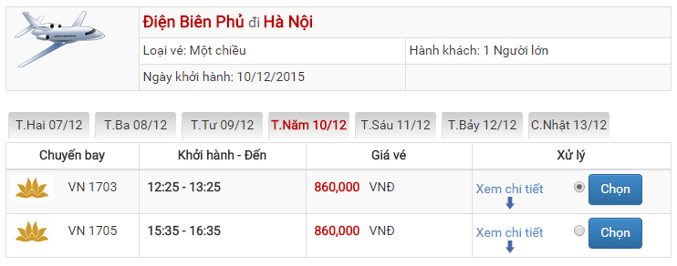 Bảng giá Vé máy bay đi Hà Nội xuất phát từ Điện Biên (giá tham khảo tại thời điểm ngày 10/12/2015)