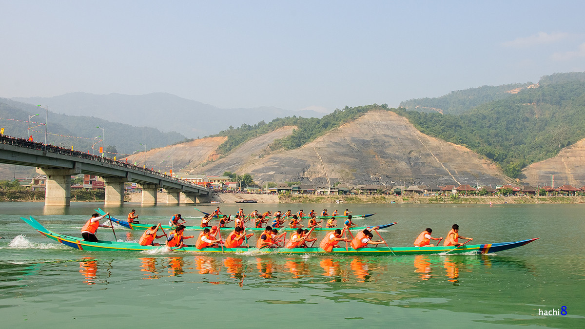 Lễ hội đua thuyền đuôi én thị xã Mường Lay được tổ chức trong ngày đầu tiên của năm mới tại lòng hồ thủy điện Sơn La
