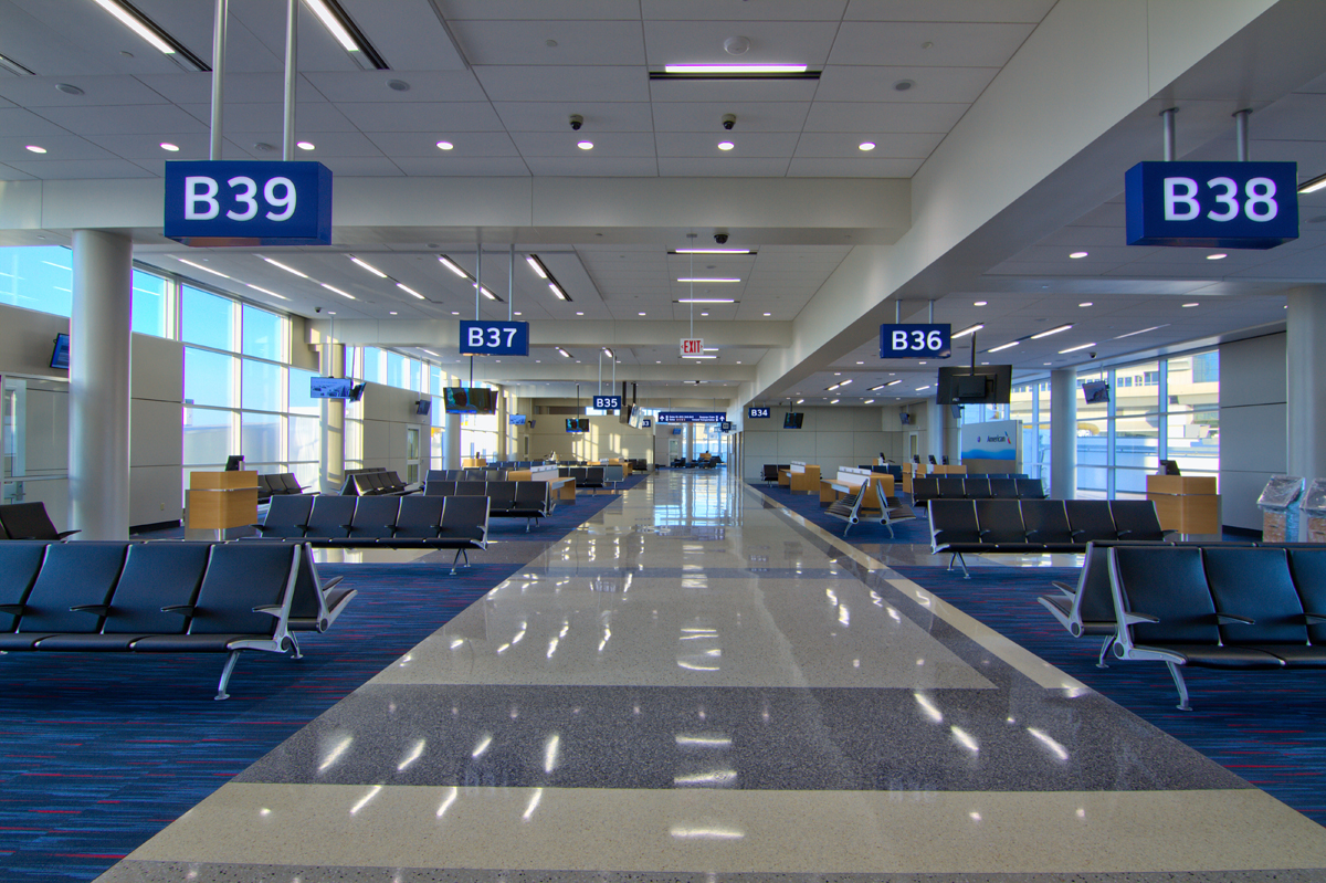– Nhà ga C có 31 cửa: C2-C4, C6-C8, C10-C12, C14-C17, C19-C22, C24-C33, C35-C37, C39. Đây là Nhà ga hoạt động độc quyền của American Airlines