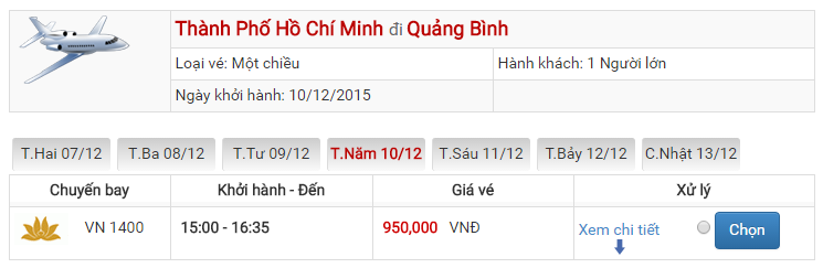 1. Cập nhật bảng vé máy bay đi Đồng Hới Sài Gòn của Vietnam Airlines