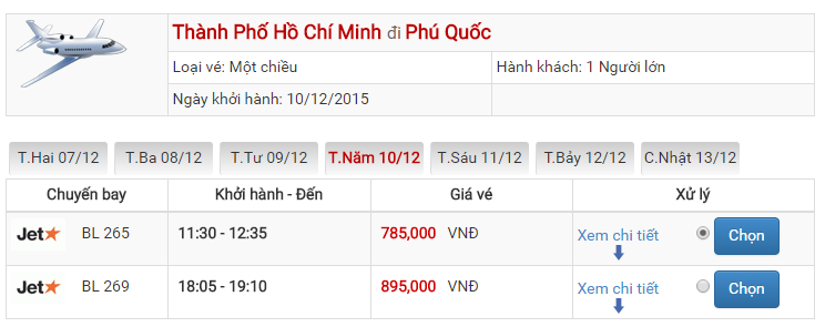 3. Hướng dẫn mua vé máy bay Phú Quốc Sài Gòn của Jetstar