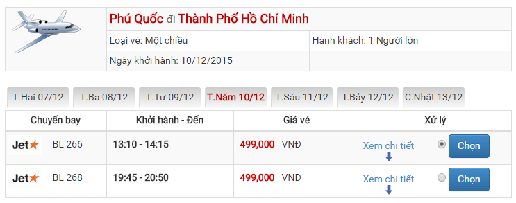 6. Thông tin mua vé máy bay Phú Quốc Sài Gòn của Jetstar