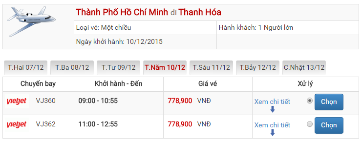 1. Cập nhật bảng vé máy bay đi Thanh Hóa Sài Gòn của VietJet Air